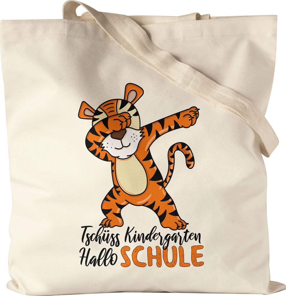 Tschüss Kindergarten Hallo Schule Jutebeutel Stoffbeutel Canvas Einschulung 1. Klasse Tiger Dab Geschenkidee