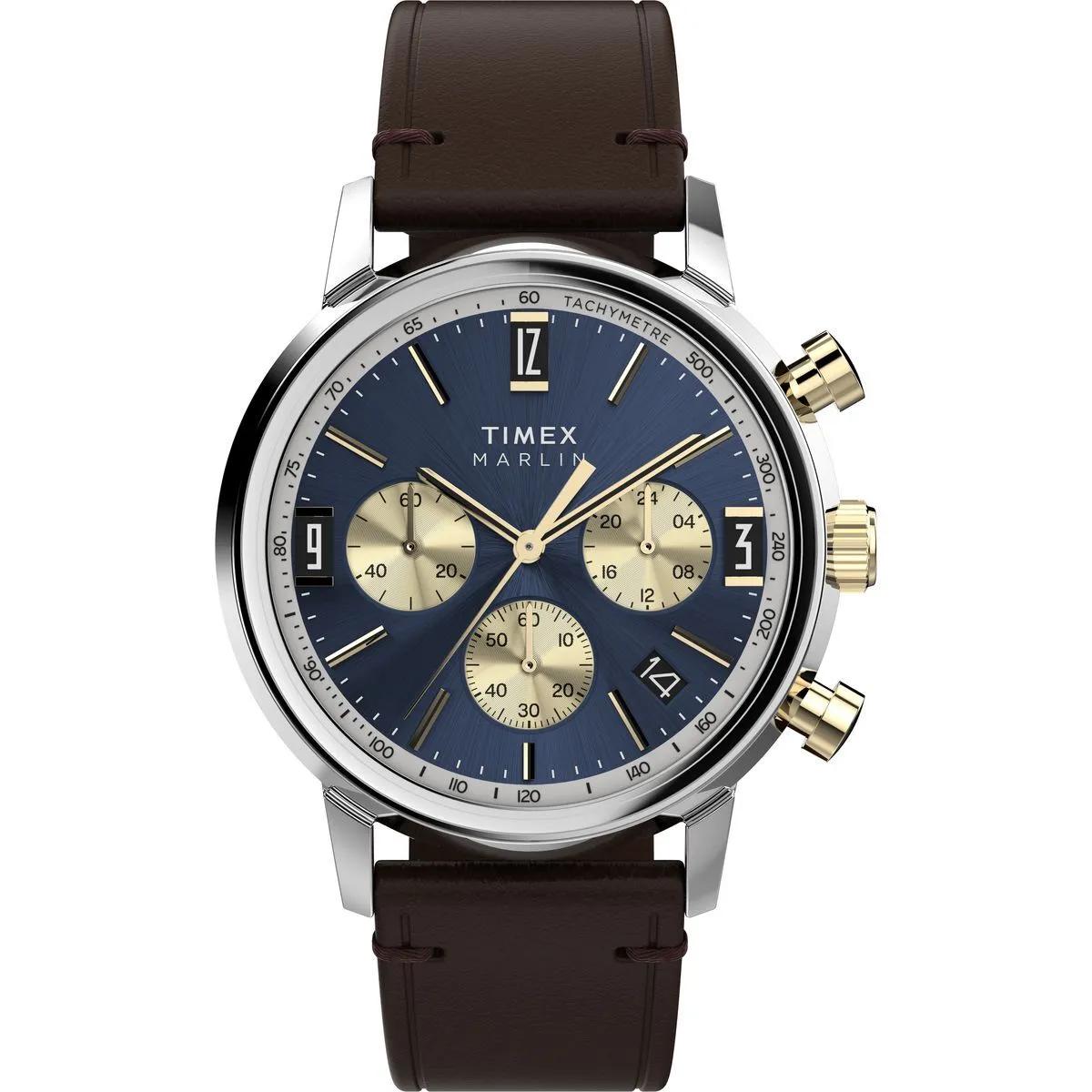 Timex Uhren - Quarz-Analoguhr Marlin Chronograph Stripes - Gr. unisize - in Blau - für Herren - aus Leder & Saphirglas & Edelstahl