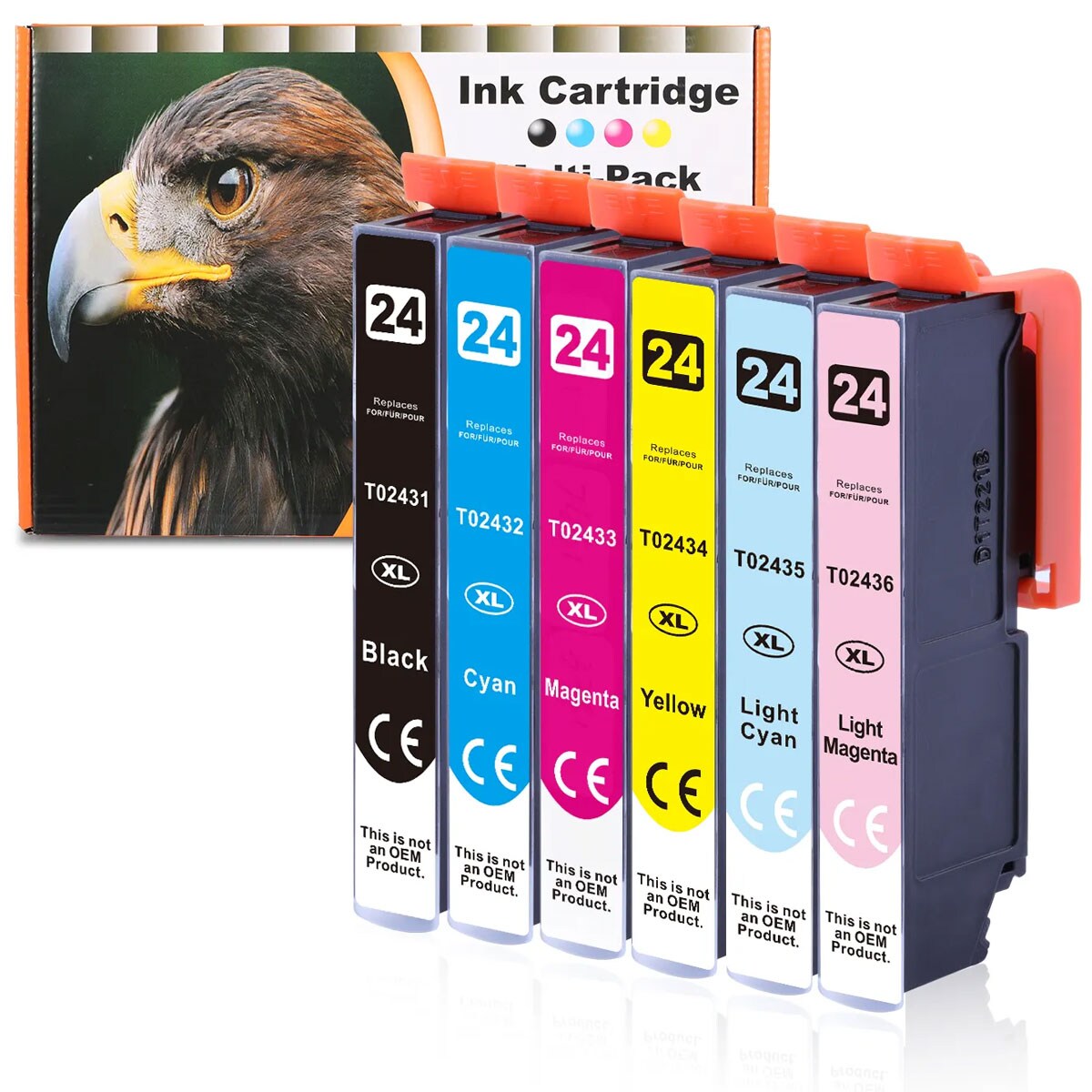 Kompatibel 6er Set Epson Elefant, T2438, 24XL, C13T24384010 Druckerpatronen Tinte von D&C