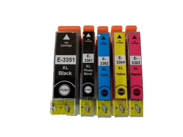 5x kompatible XXL Tintenpatronen für Epson Expression C13T33374010 C13T33574010 T333740 T335740 T3351-T3364 T 3351 - T 3364 Black Cyan Magenta Yel...