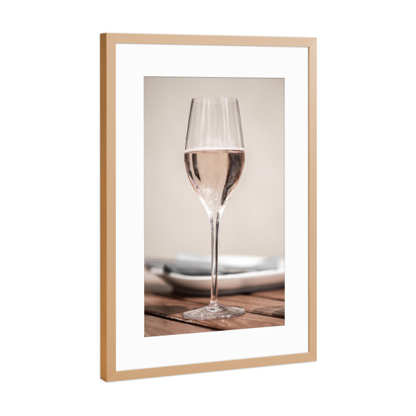 Poster mit Rahmen Kupfer "Sektglas auf Tisch" artboxONE - Essen & Trinken / Alkohol - Sekt,Champagne,Glas,Restaurant
