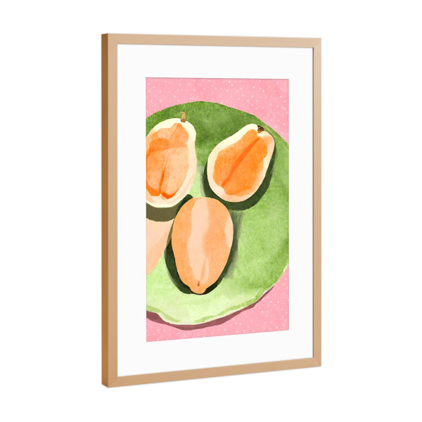 Poster mit Rahmen Kupfer "Papayas auf Tisch" artboxONE - Essen & Trinken / Obst & Gemüse