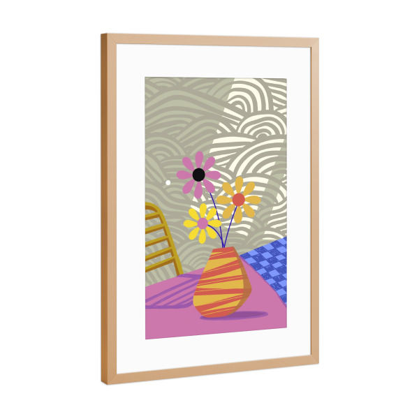 Poster mit Rahmen Kupfer "Buntes Blumenarrangement" artboxONE - Floral,Abstrakt - Blumen,Vase,Abstrakt,Muster,Geometrisch,Bunt,Tisch,Modern