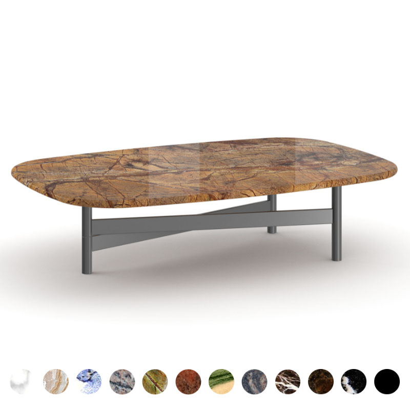 Couchtisch nach Maß Marmor als Geheimtipp mit hochwertigem Designer Untergestell Tisch von ricon manufaktur konfigurieren Regenwald Stein