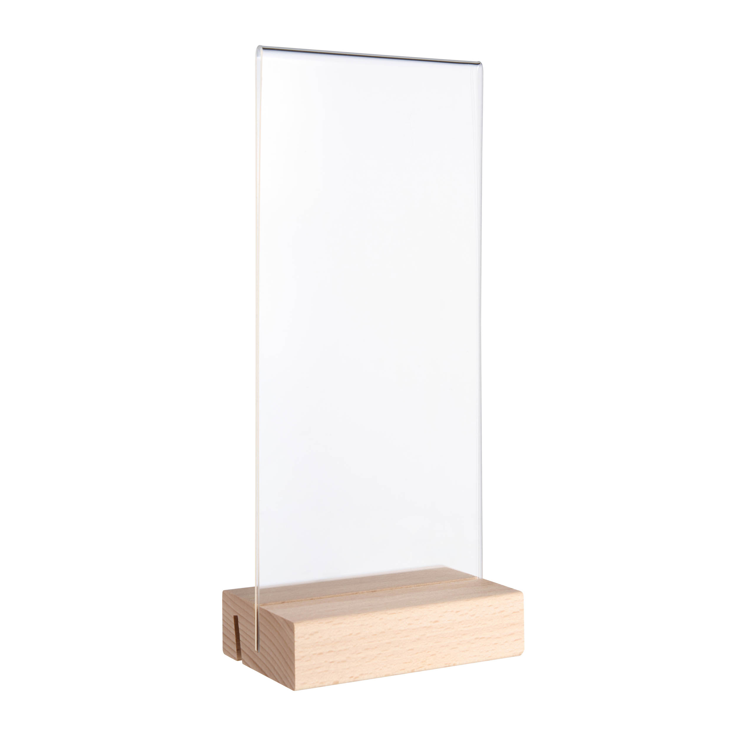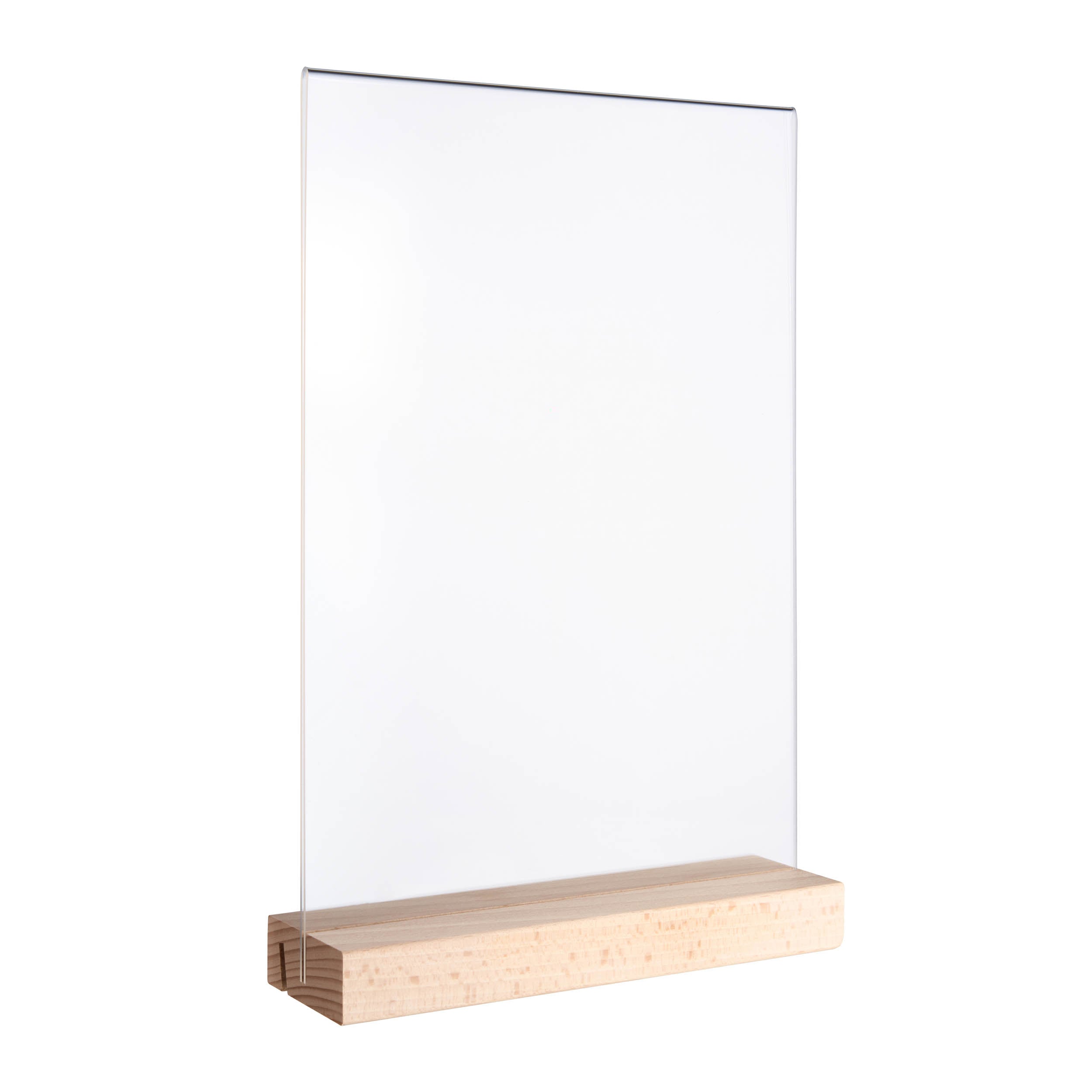 Acryl Tischaufsteller mit Holzfuß Buche | A4 | Hochformat, Acryl (PMMA)|Buchenholz
