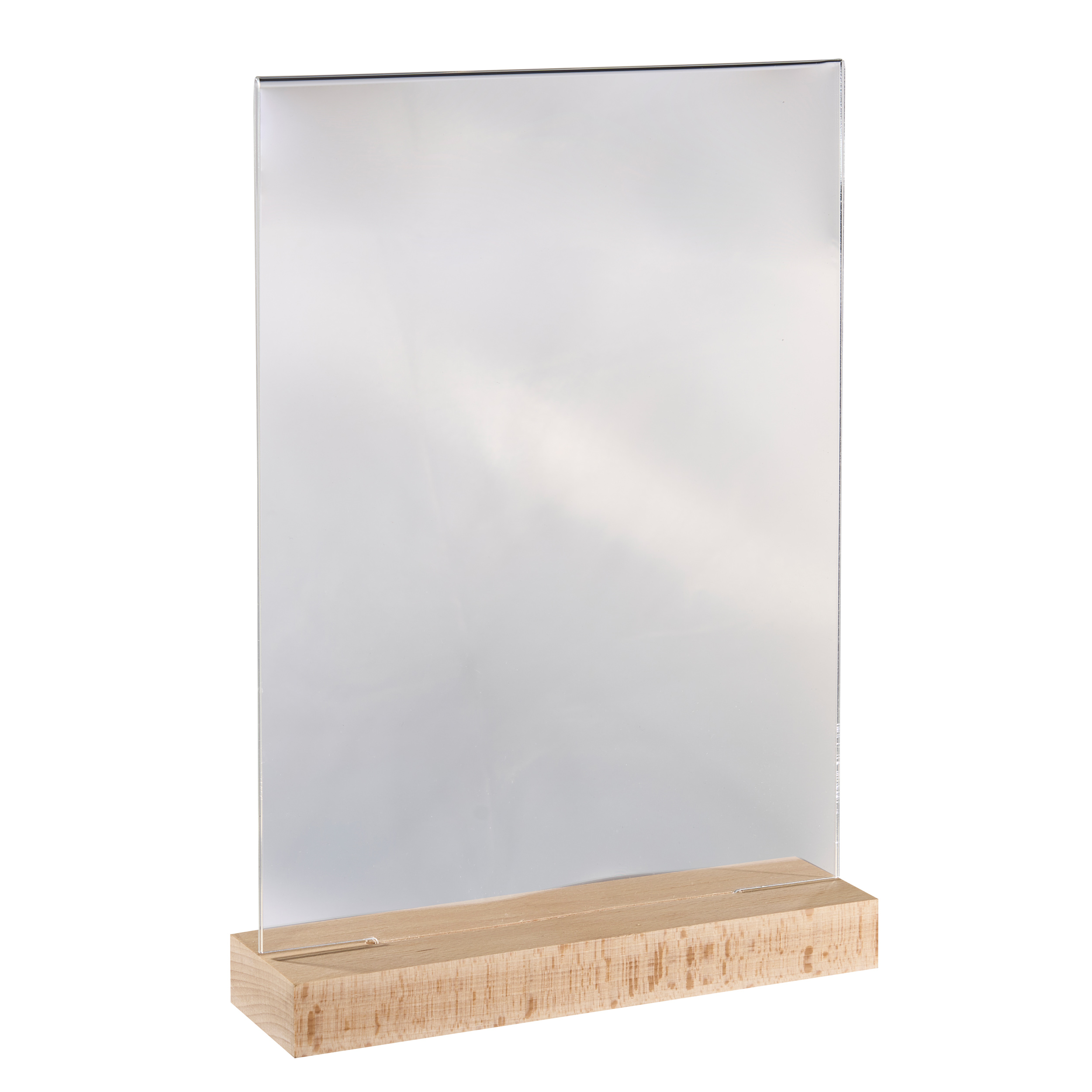 FrameUp Acryl Tischaufsteller mit Holzfuß A5 hoch Kiefer