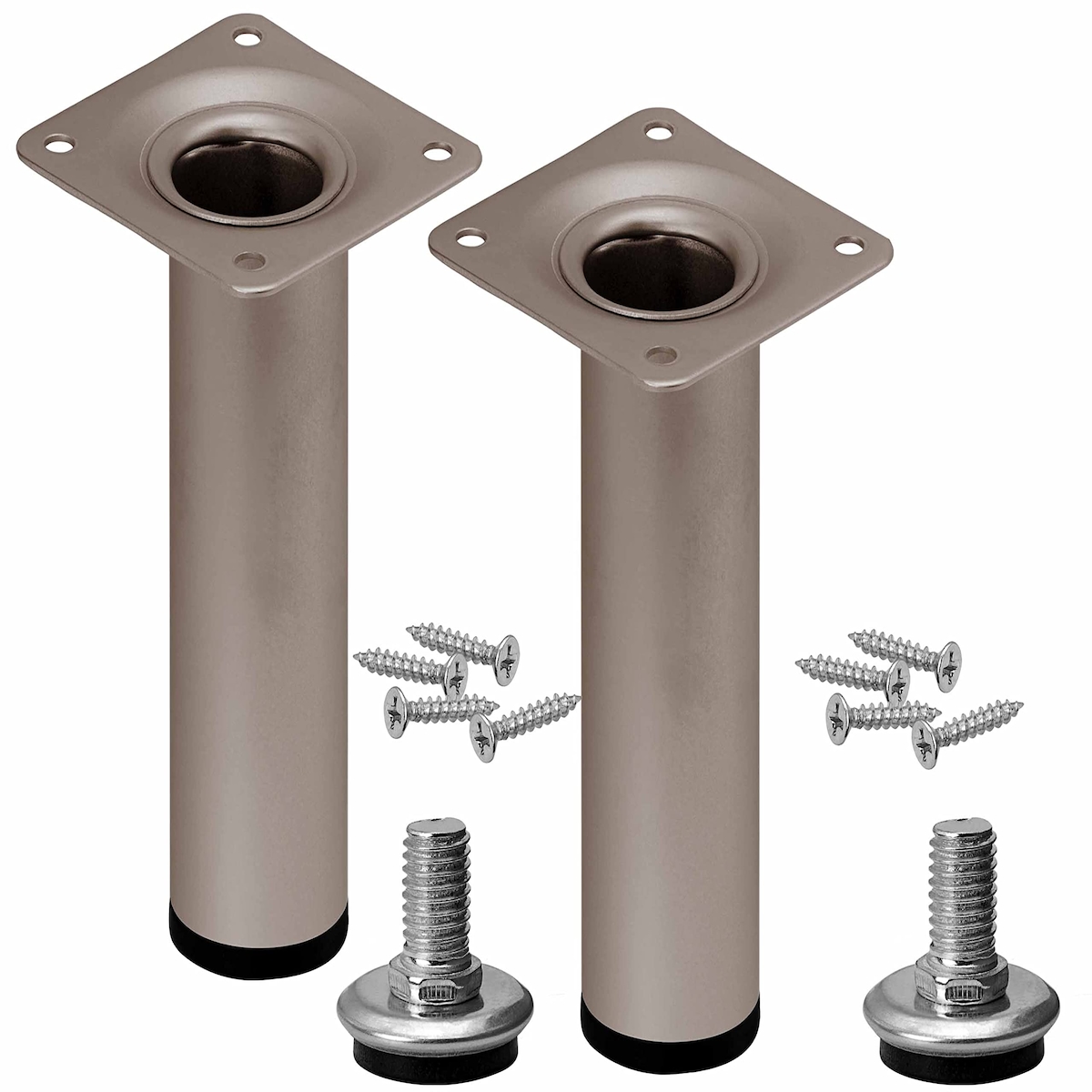 camar Tischfüße verstellbar 690-720mm rund ø 60mm, Metall Tischbeine höhenverstellbar, Edelstahl gebürstet 4 Stück