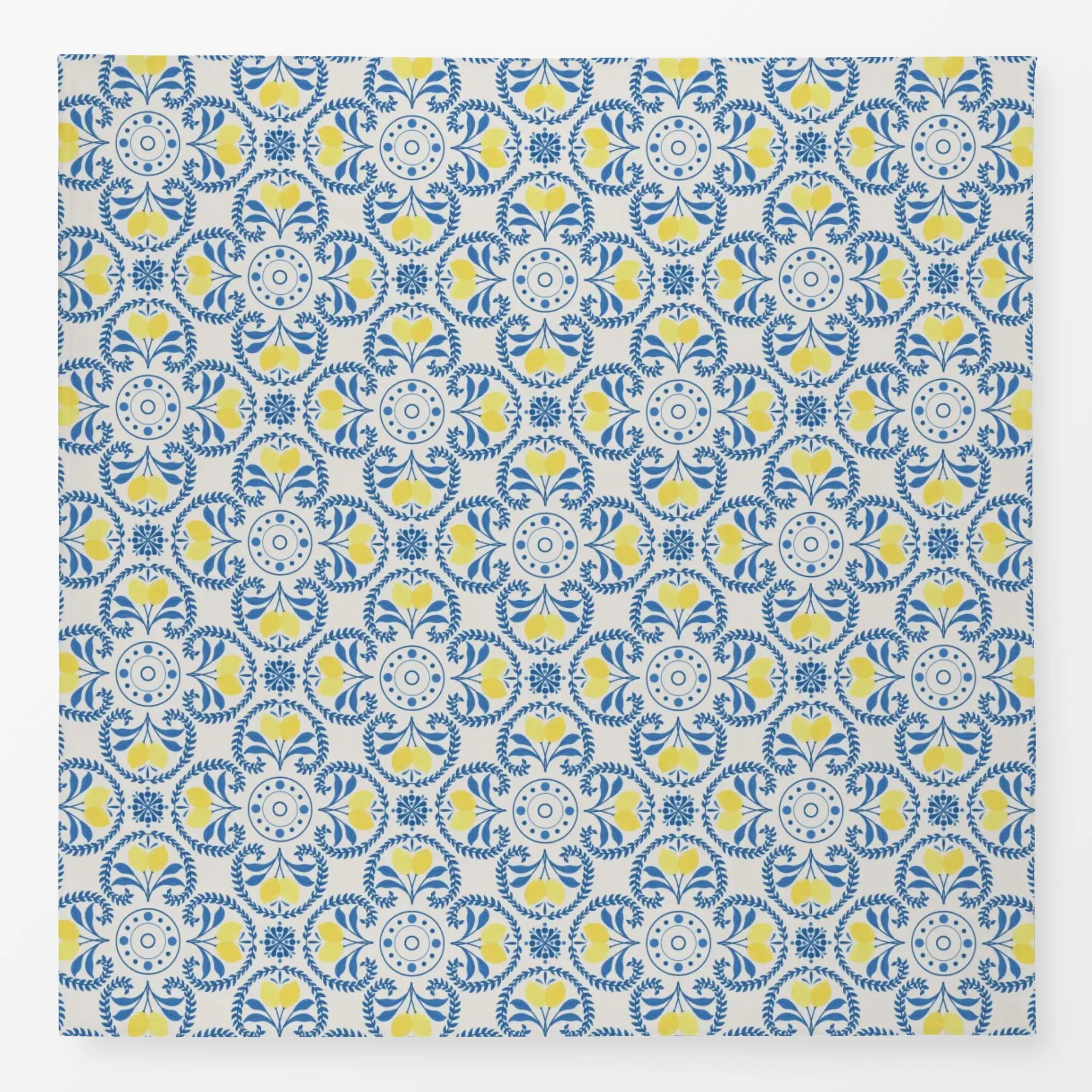 Tischdecke Mediterranean Vibes Weiss - Sommer, Symbole & Muster - von „DEINKI"; Sommerblumen, summer, Zitronen, mediterranea...