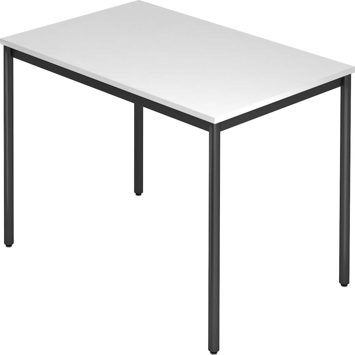 bümö Multifunktionstisch weiß, Tisch 120 x 80 cm, Tischfuß rund in schwarz - einfacher Tisch klein, Besprechungstisch System D-Serie, Konferenztisch,