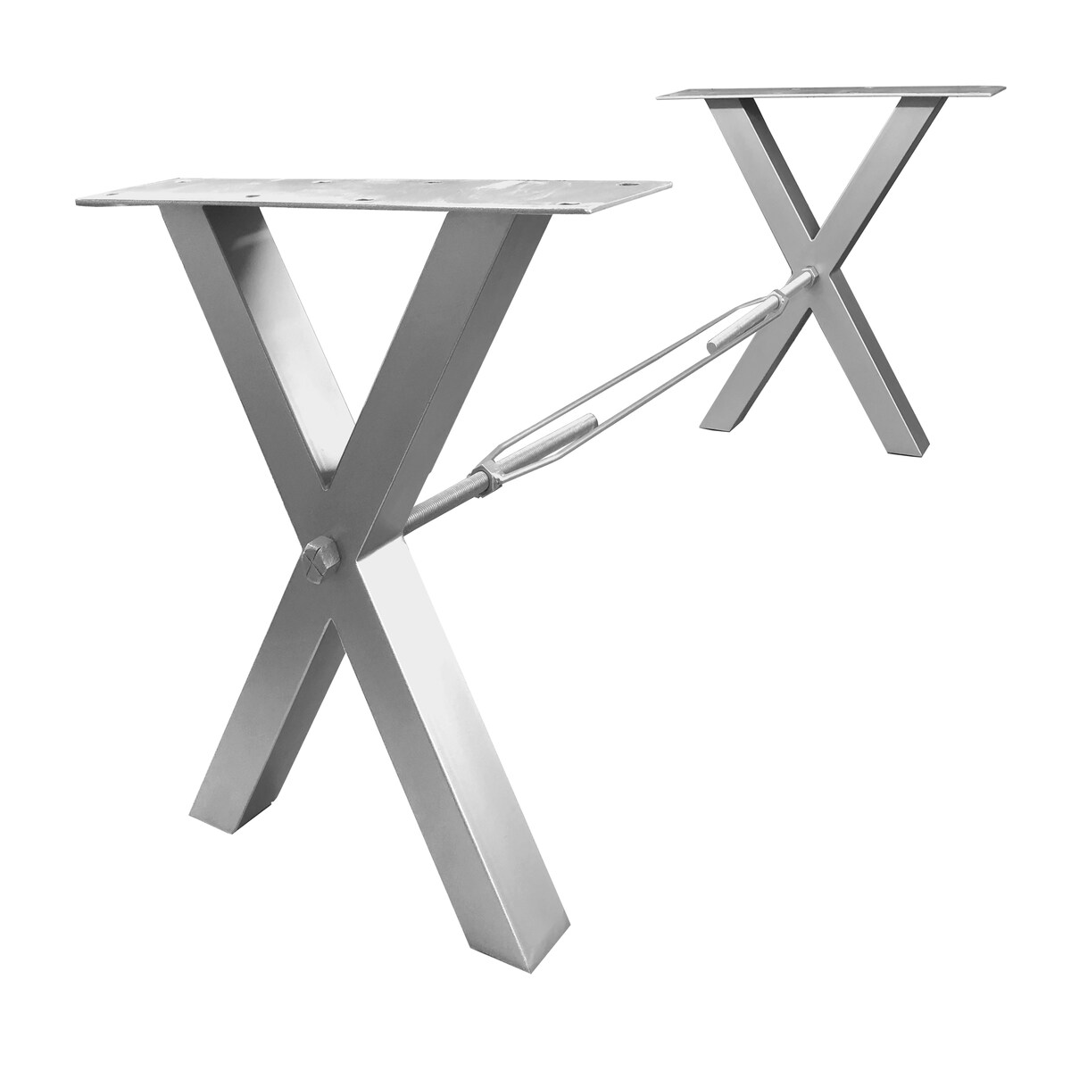 Tischgestell in X-Form, 2er Set, Roheisen lackiert, Silber, X-Gestell aus Metall für Holztische, 70 x 10 x 74 cm, Gestell für DIY-Projekte
