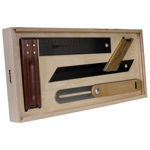 Hedü Tischler-Set bestehend aus: Tischlerwinkel 300mm Gehrmaß 300mm Schmiege 300mm in Holzkiste Nr. A033