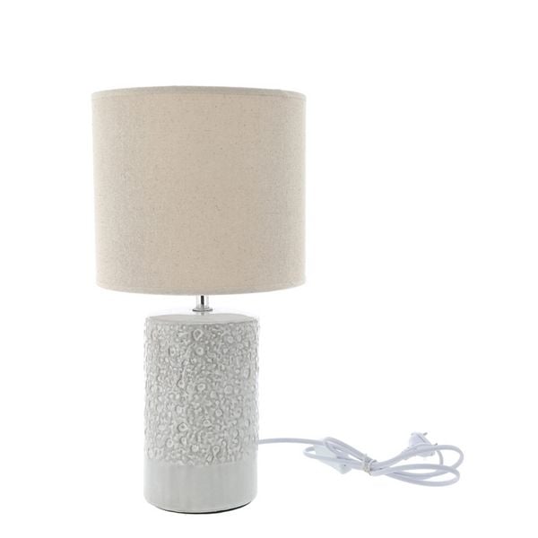 LED Tischleuchte aus Keramik mit Stoffschirm für die Fensterbank Nachttischlampe