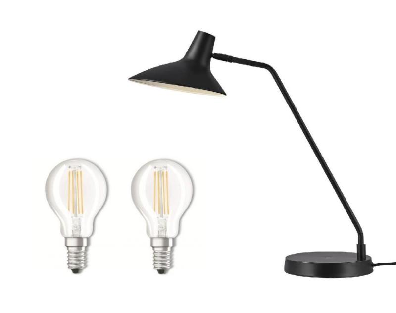 BUNDLE DFTP Darci Tischleuchte Schwarz inkl. 2 E14 LED Lampen von Osram