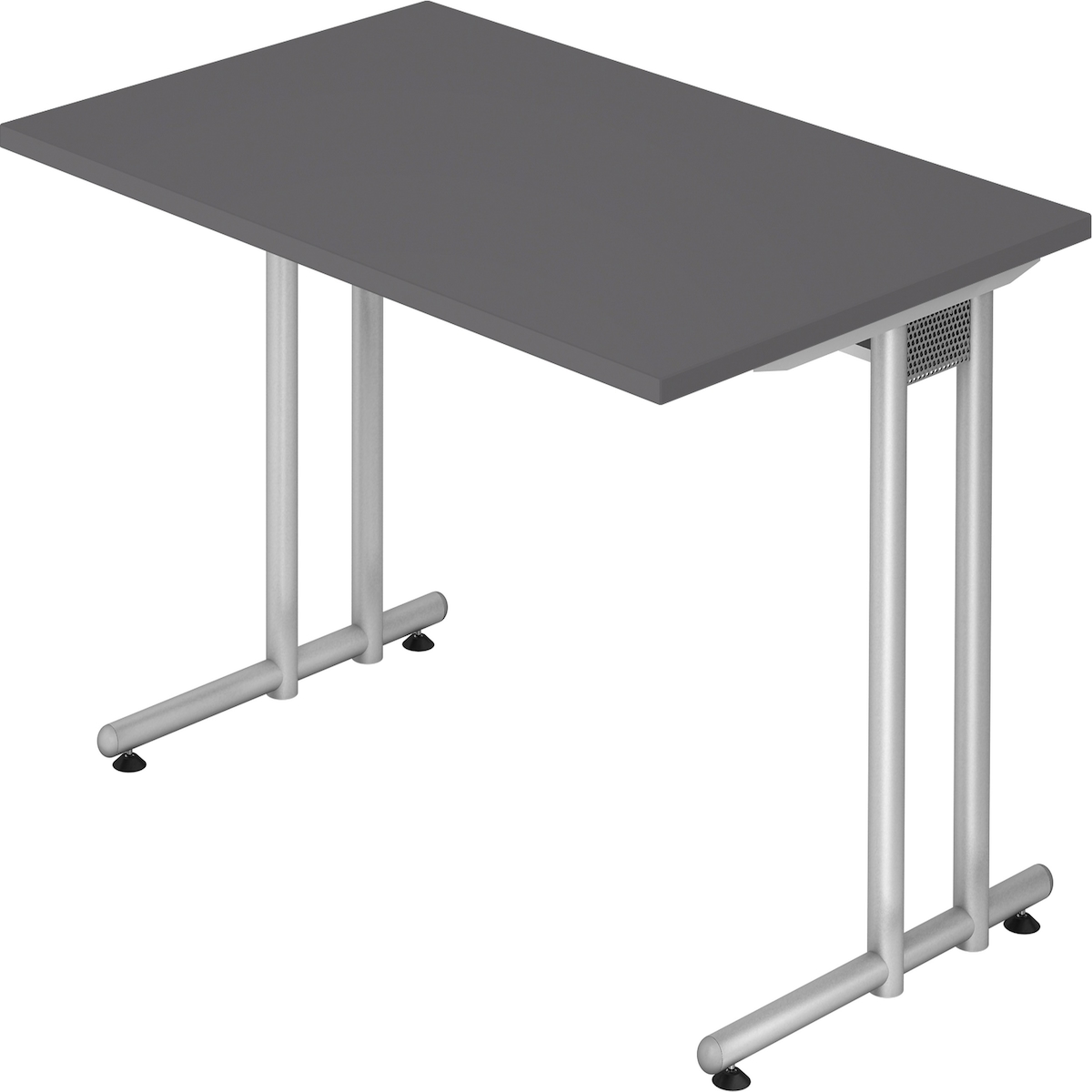 bümö Schreibtisch klein N-Serie 120x80 cm, Tischplatte aus Holz in graphit, Gestell aus Metall in Silber - PC Tisch, kleiner Computertisch für's