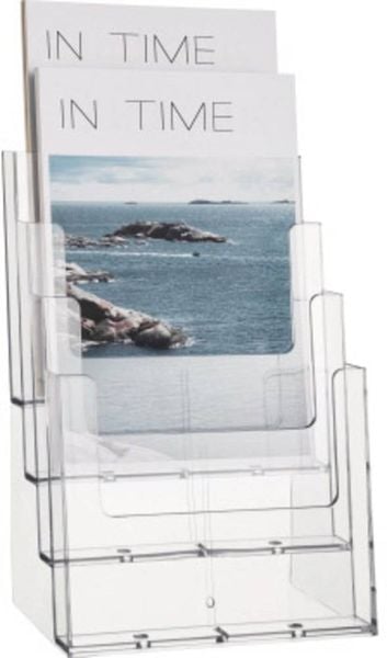 Tischprospekthalter, 4 Fächer, glasklar, stabiles Polystyrol, DIN A5