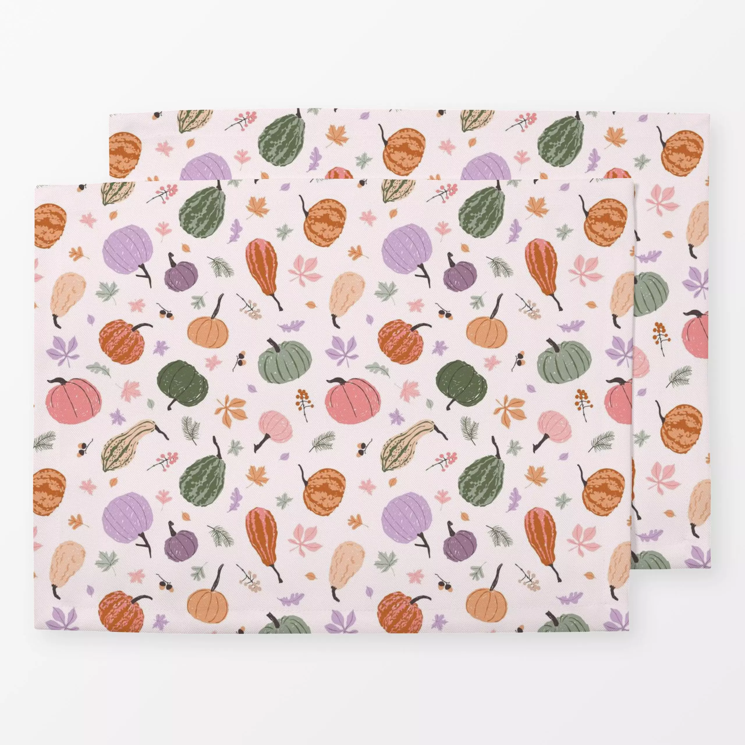 Tischset Bunte Kürbisse AOP - Herbst, Pflanzen & Botanik, Gemüse - von „DEINKI"; Zweige, Herbst, Herbstdeko, herbstlich, Her...