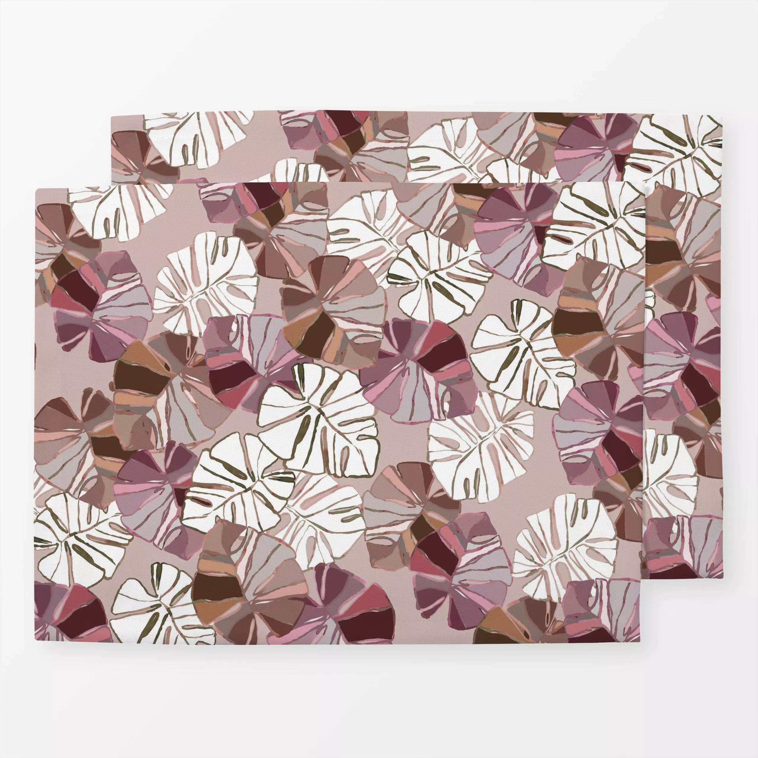 Tischset Monstera Blätter Print - Herbst, Pflanzen & Botanik - von „Danii Pollehn"; rosa, Blätter, Pflanzen, Monstera, beige...