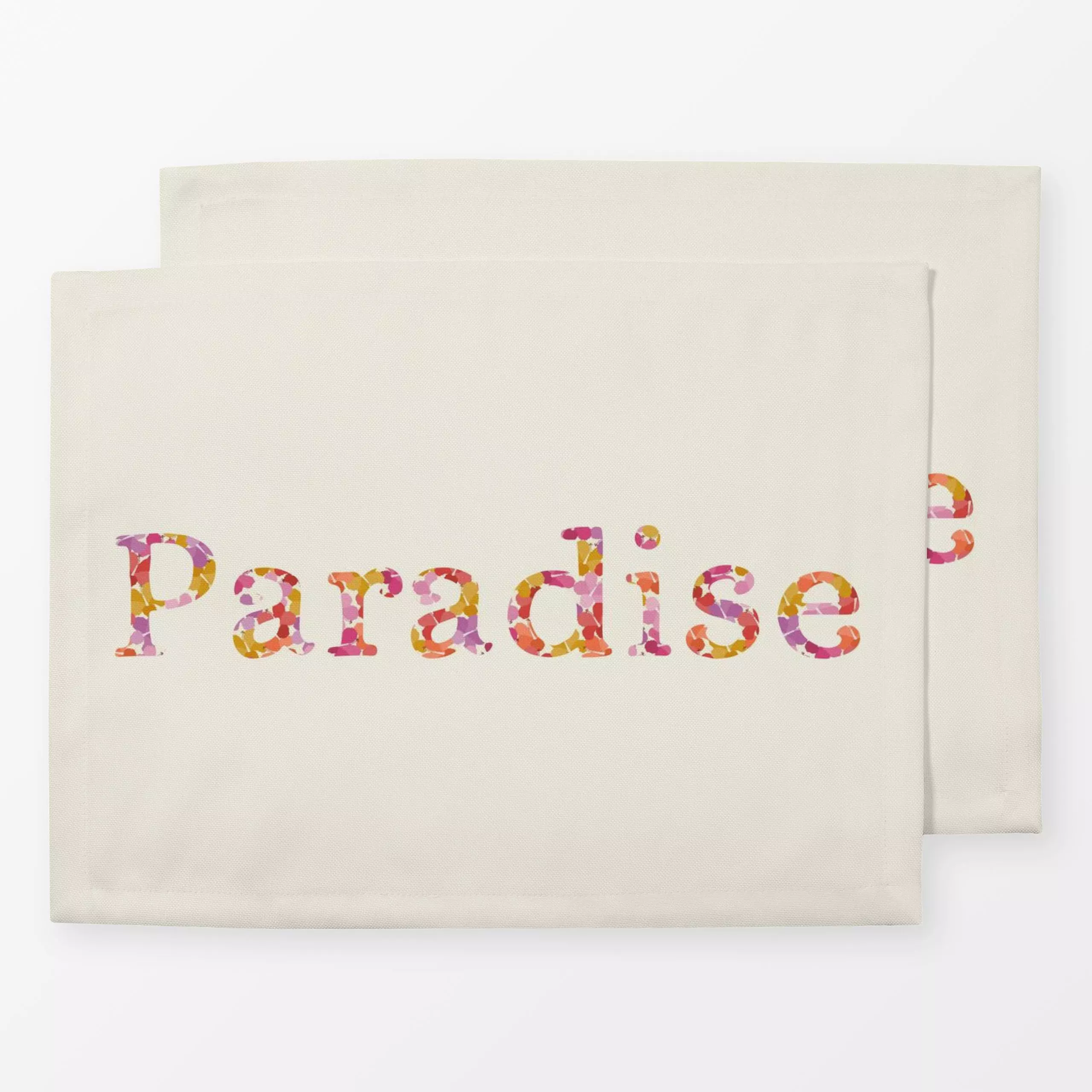 Tischset Paradise Creme Bunt - Blumen & Florales, Sommer, Sprüche & Schriftzüge - von „DEINKI"; Blumen, Strand, tropical, Pa...