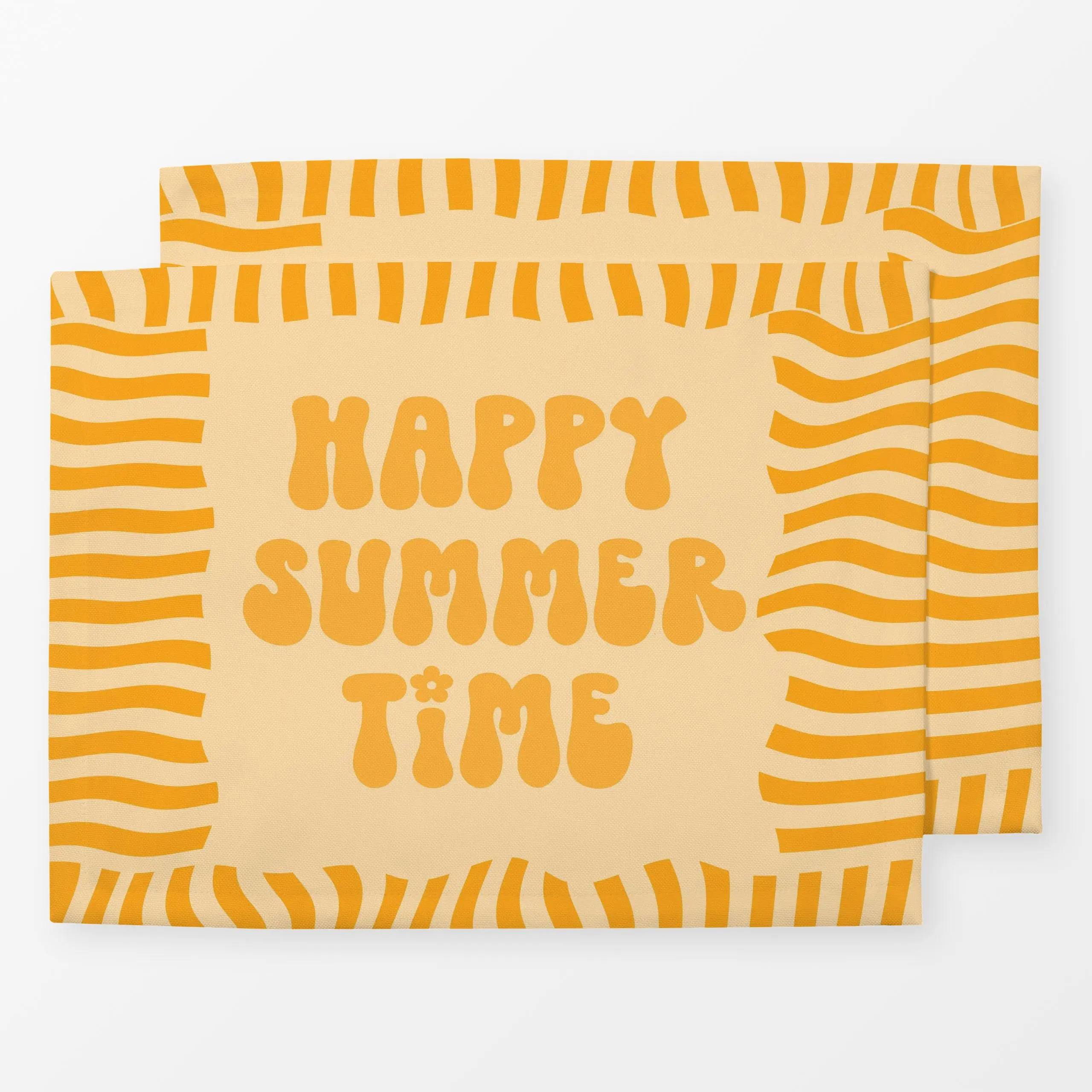 Tischset Happy Summertime Orange - Sommer, Sprüche & Schriftzüge, Symbole & Muster - von „Monika Strigel"; Orange, Sommer, s...