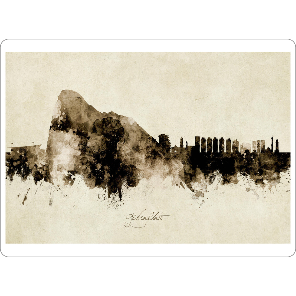 Tischset "Gibraltar Skyline Sepia" artboxONE - Städte - Gibraltar,Skyline,Cityscape,Stadtbild,Watercolor,Painting - Bild gibraltar