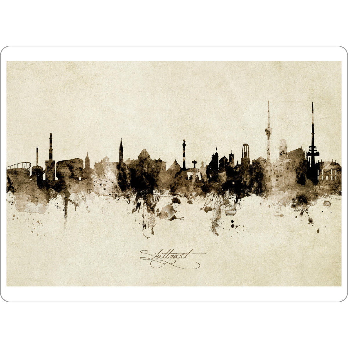 Tischset "Stuttgart Germany Skyline Sepia" artboxONE - Städte / Stuttgart - Stuttgart,Deutschland,Skyline,Cityscape,Stadtbild,Watercolor,Painting