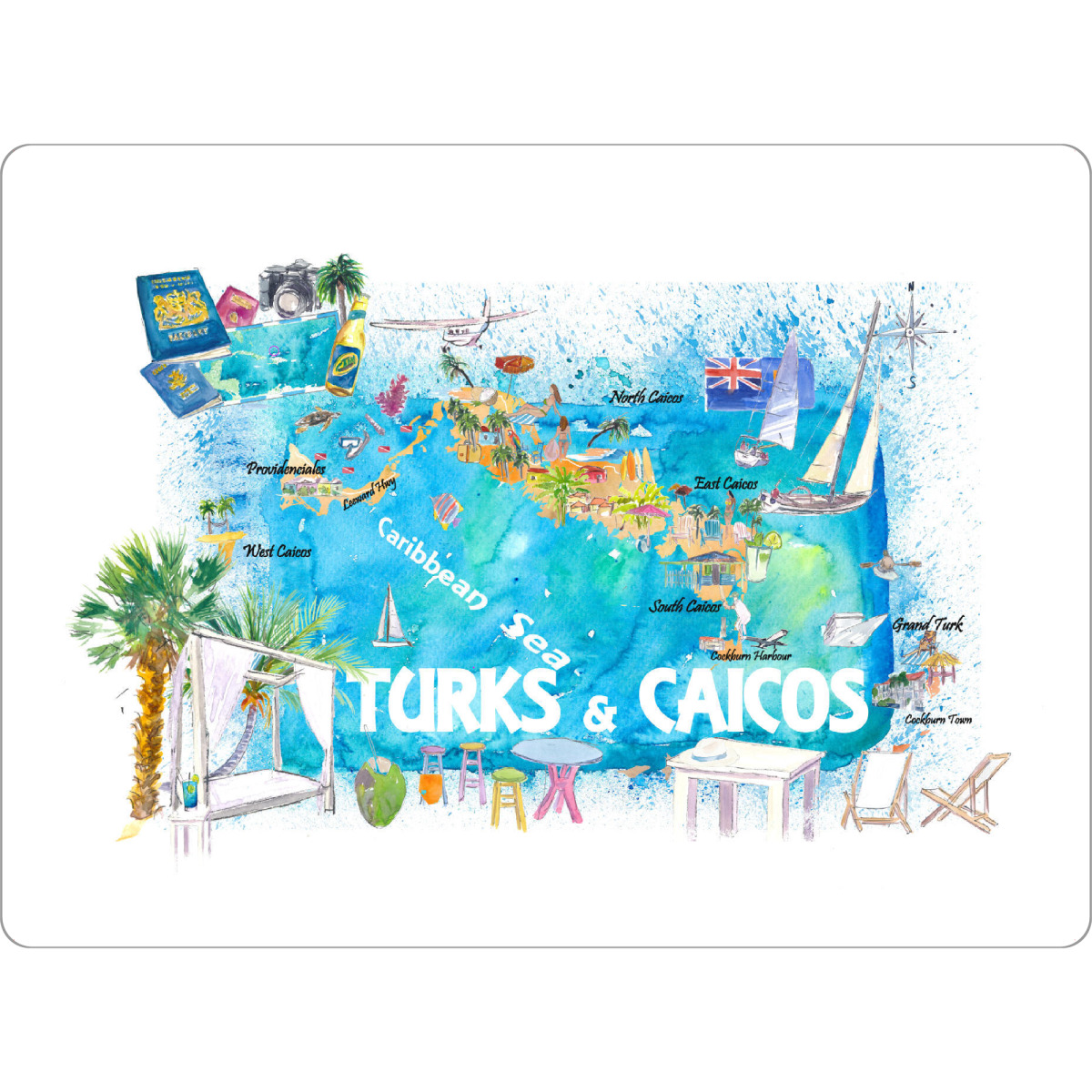 Tischset "Turks & Caicos Inselkarte" artboxONE - Reise,Reise / Strand und Meer,Buchstaben / T,Kartografie
