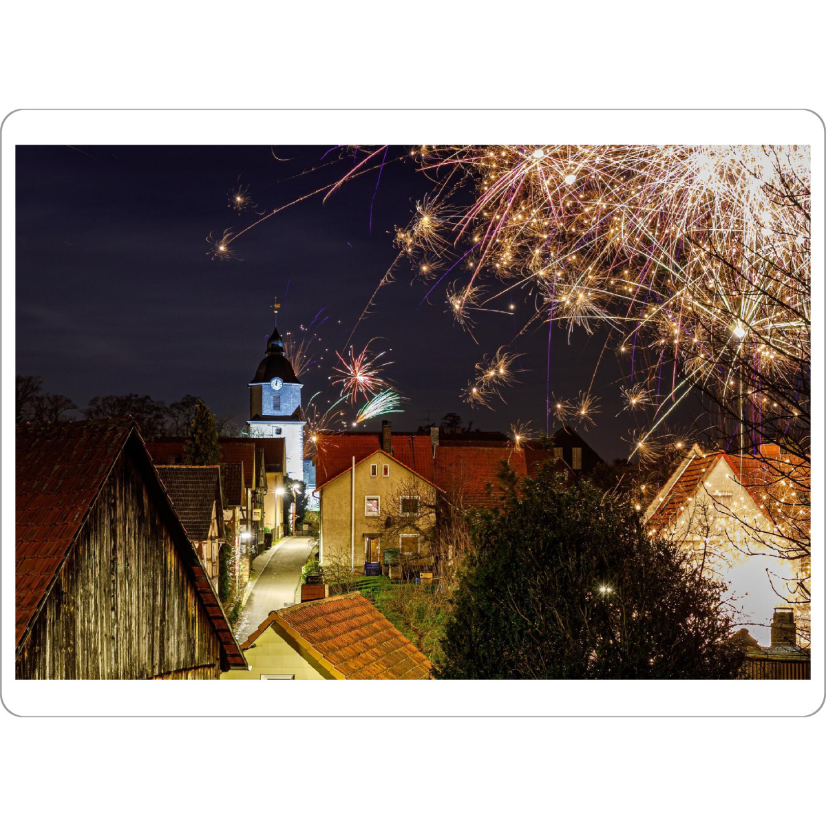 Tischset "Silvester in Herleshausen" artboxONE - Architektur - Herleshausen,Silvester,Nacht,Feuerwerk,Hessen,Kirche,Deutschland - Bild herleshausen