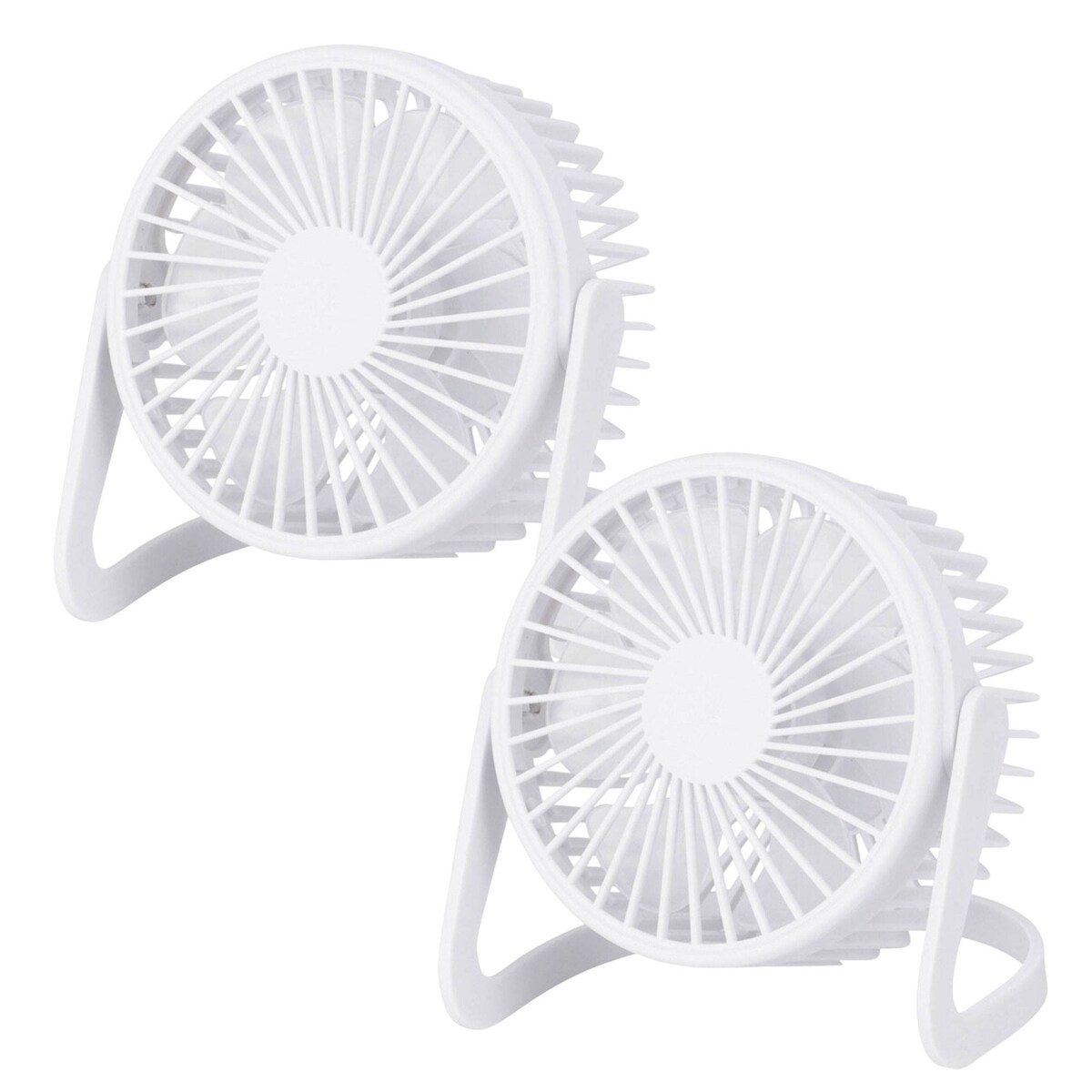 WellHome - 2er Set Tischventilatoren USB in mattem Weiß Ø14,5x11,5 cm