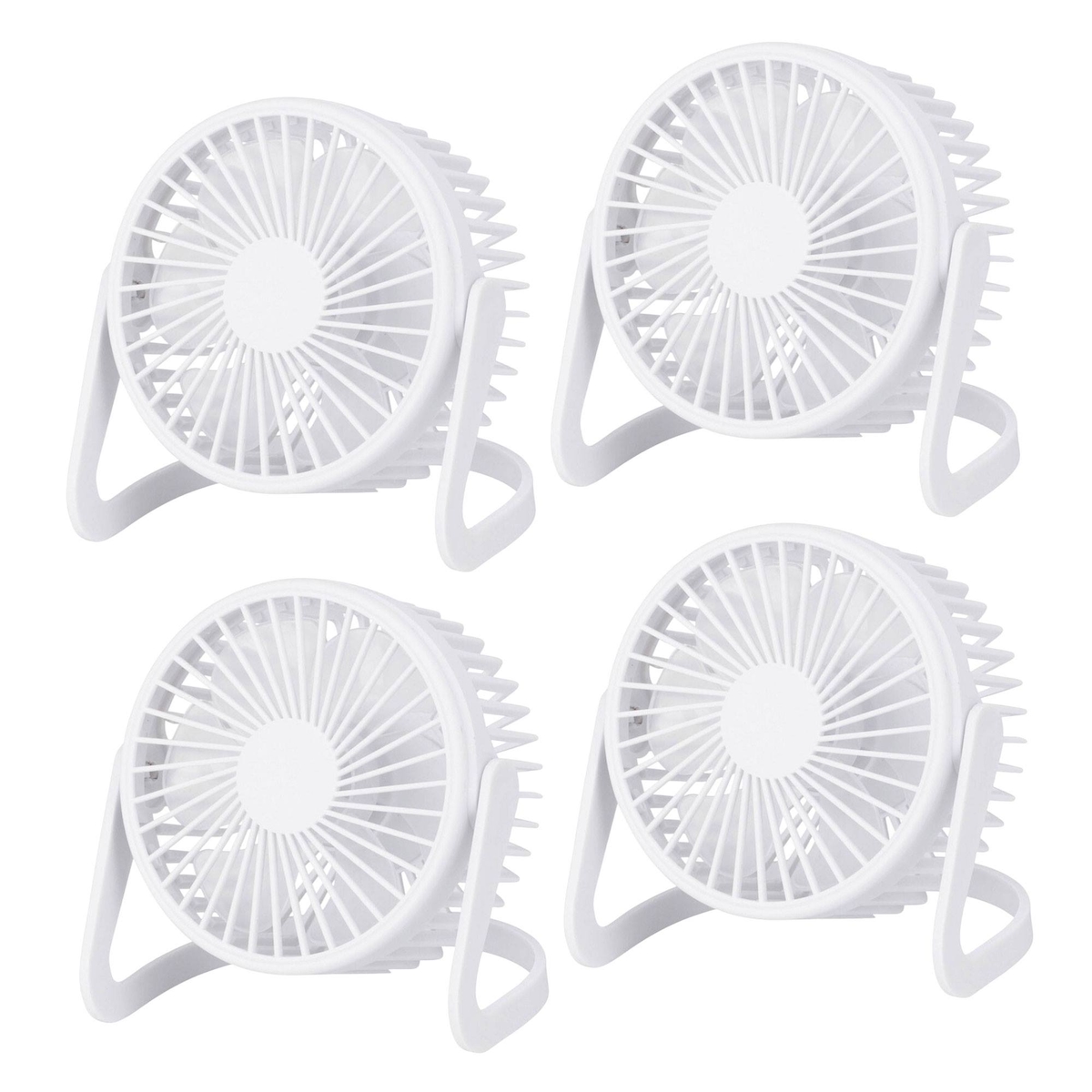 WellHome - 4er Set Tischventilatoren USB mit 3 Geschwindigkeiten in Weiß Ø16,5x29,5 cm