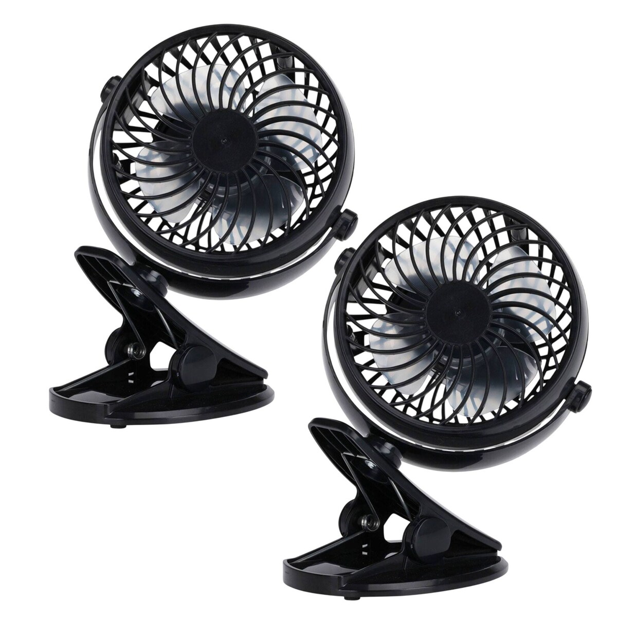 WellHome - 2er Set Tischventilatoren mit Clip 1200 mAh in Schwarz Ø13x17,5 cm