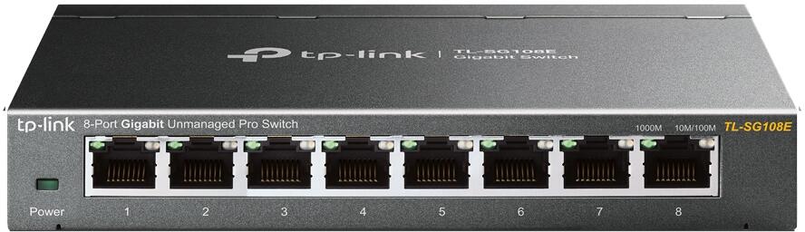 TP-Link TL-SG108E 8-Port-Gigabit-Unmanaged Pro Switch, 8 Gigabit-RJ45-Ports, schwarz