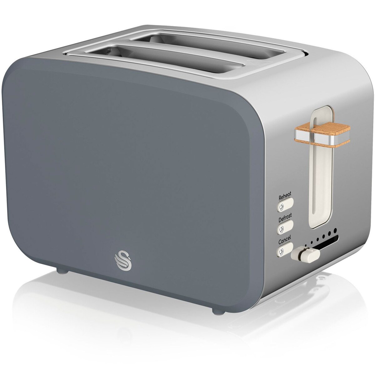 SWAN ST14610GRYNEU Toaster Breitschlitz 2 Scheiben 3 Funktionen Design Nordic, Grau, 900W