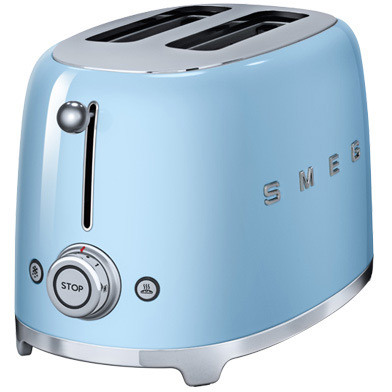 SMEG Edelstahl Toaster 2 Scheiben 6 Modi, Hochglanz, Auftaufunkton, 2 lange Schlitze, für 2 Scheiben, 950,00 W, Auftauen, Rösten, Stopp - Türkis