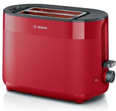 Bosch TAT2M124 Toaster, 950 W, 2 Schlitze, Auftaufunktion, Nachtoastfunktion, rot