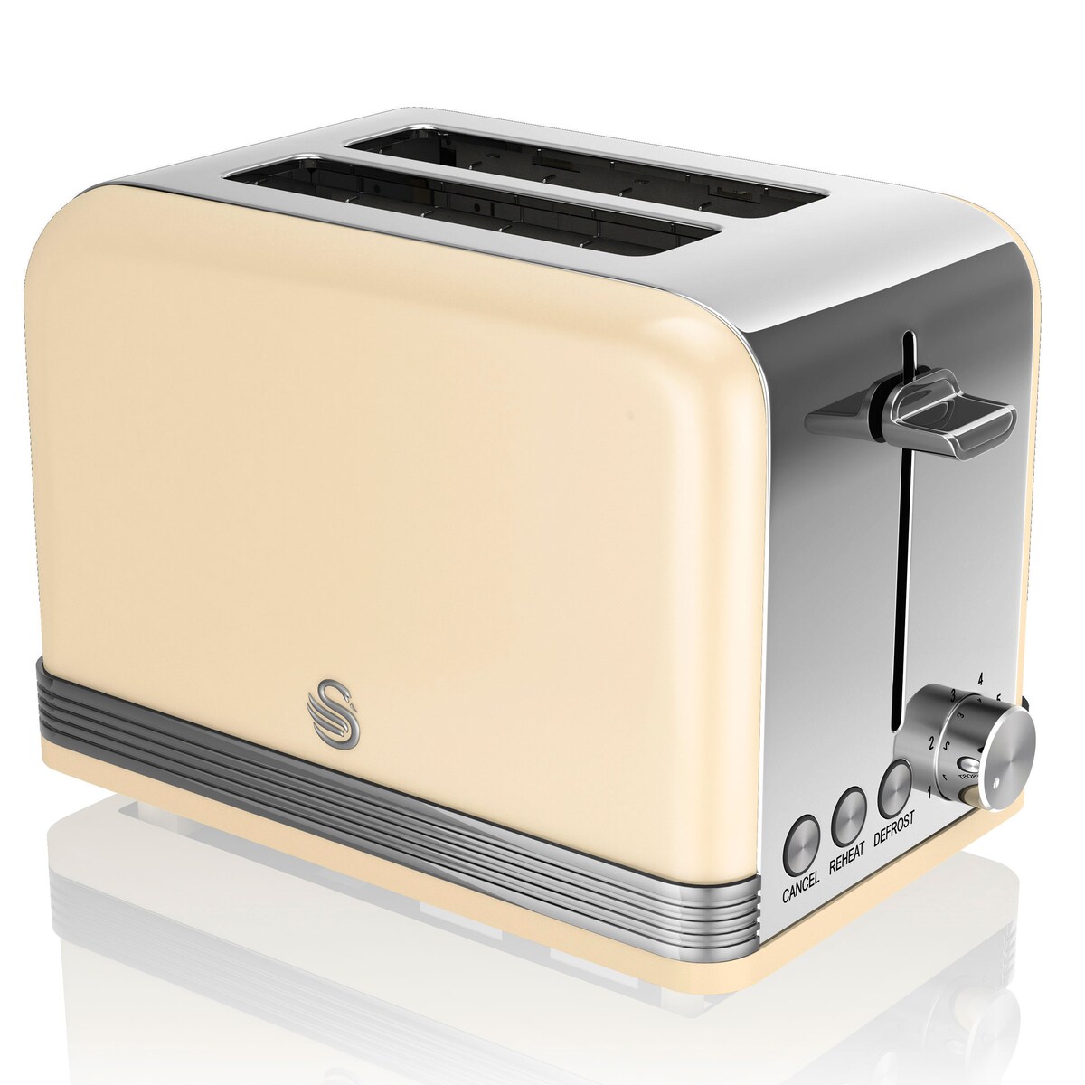 SWAN ST19010CNEU Retro Toaster Breite Schlitze 2 Scheiben 3 Funktionen 6 Stufen Toasting, Vintage, Creme, 800W