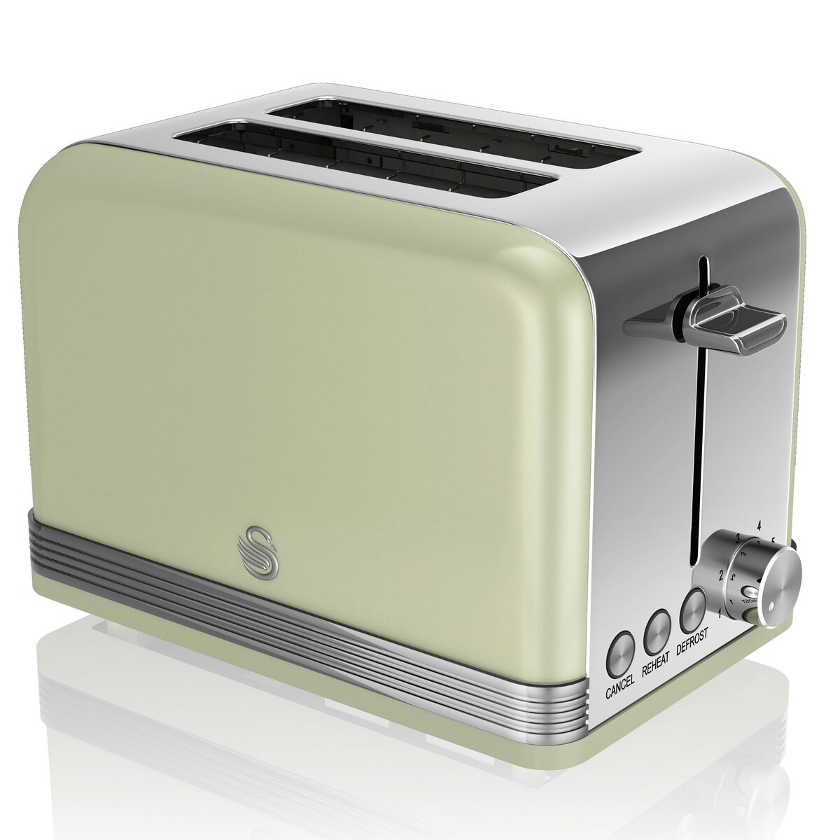 SWAN ST14610GRENEU Toaster Breitschlitz 2 Scheiben 3 Funktionen Design Nordic, Grün, 900W