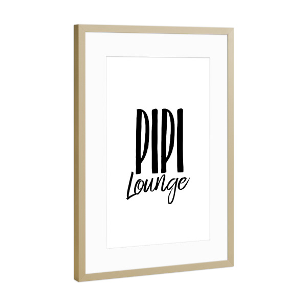 Poster mit Rahmen Gold "Pipi Lounge" artboxONE - Typografie,Schwarzweiß - Klo,Toilette,Pipi,Wc,Lustig,Badezimmer,Toilet,Typo,Typografie,Schwarzweiß