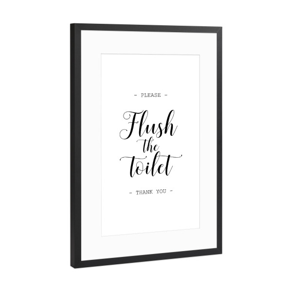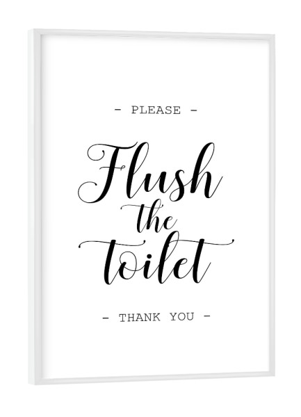 Poster mit weißem Rahmen "Flush the toilet" artboxONE - Typografie,Schwarzweiß - Bathroom,Badezimmer,Toilet,Toilette,Wc