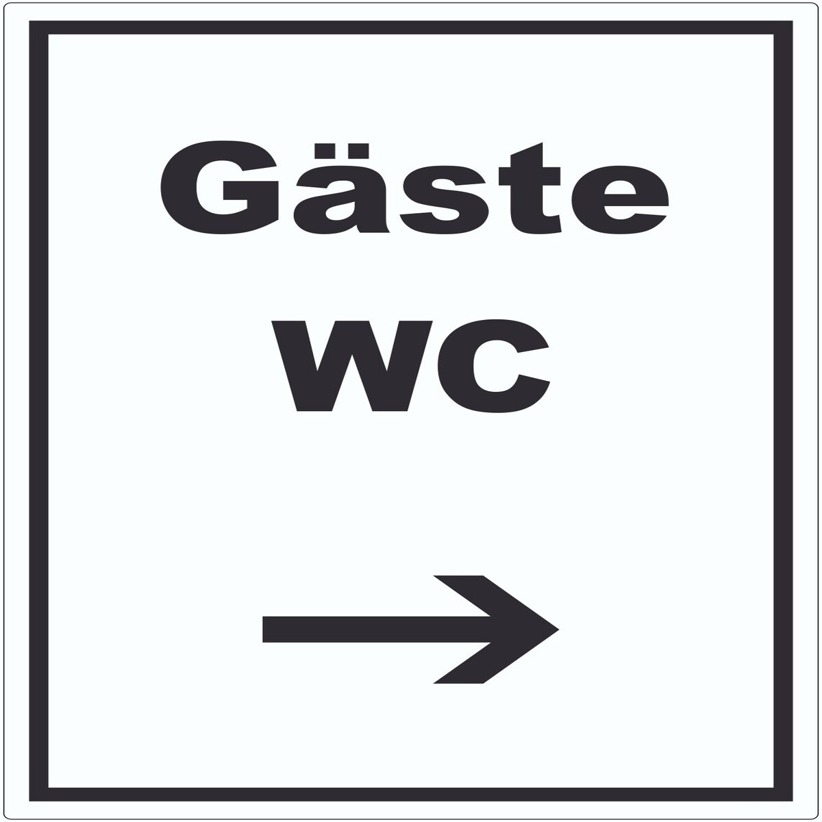 Gäste WC Schild mit Text und Richtungspfeil links Toilette hochkant A3 Rückseite selbstklebend