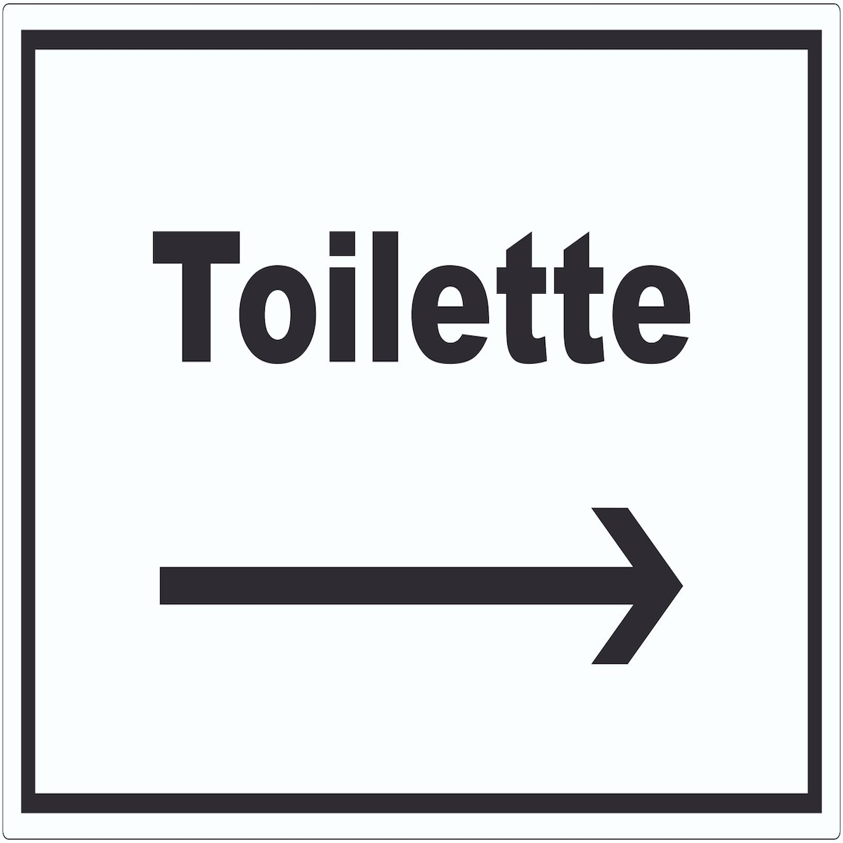 HB-Druck Toilette Schild mit Text und Richtungspfeil rechts Klo WC waagerecht A4 Rückseite selbstklebend