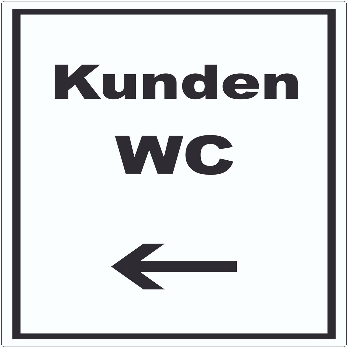Kunden WC Schild mit Text und Richtungspfeil links Toilette waagerecht A4 (210x297mm)