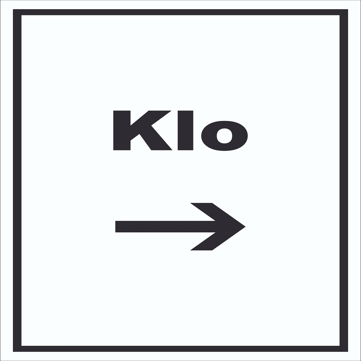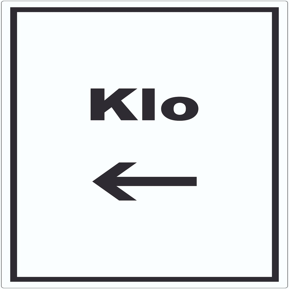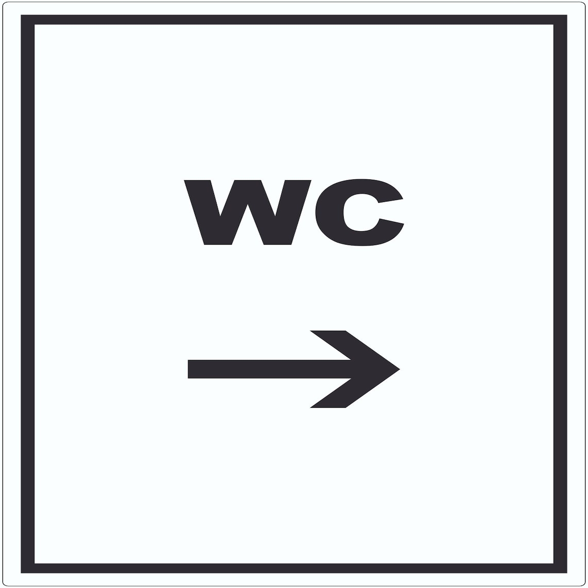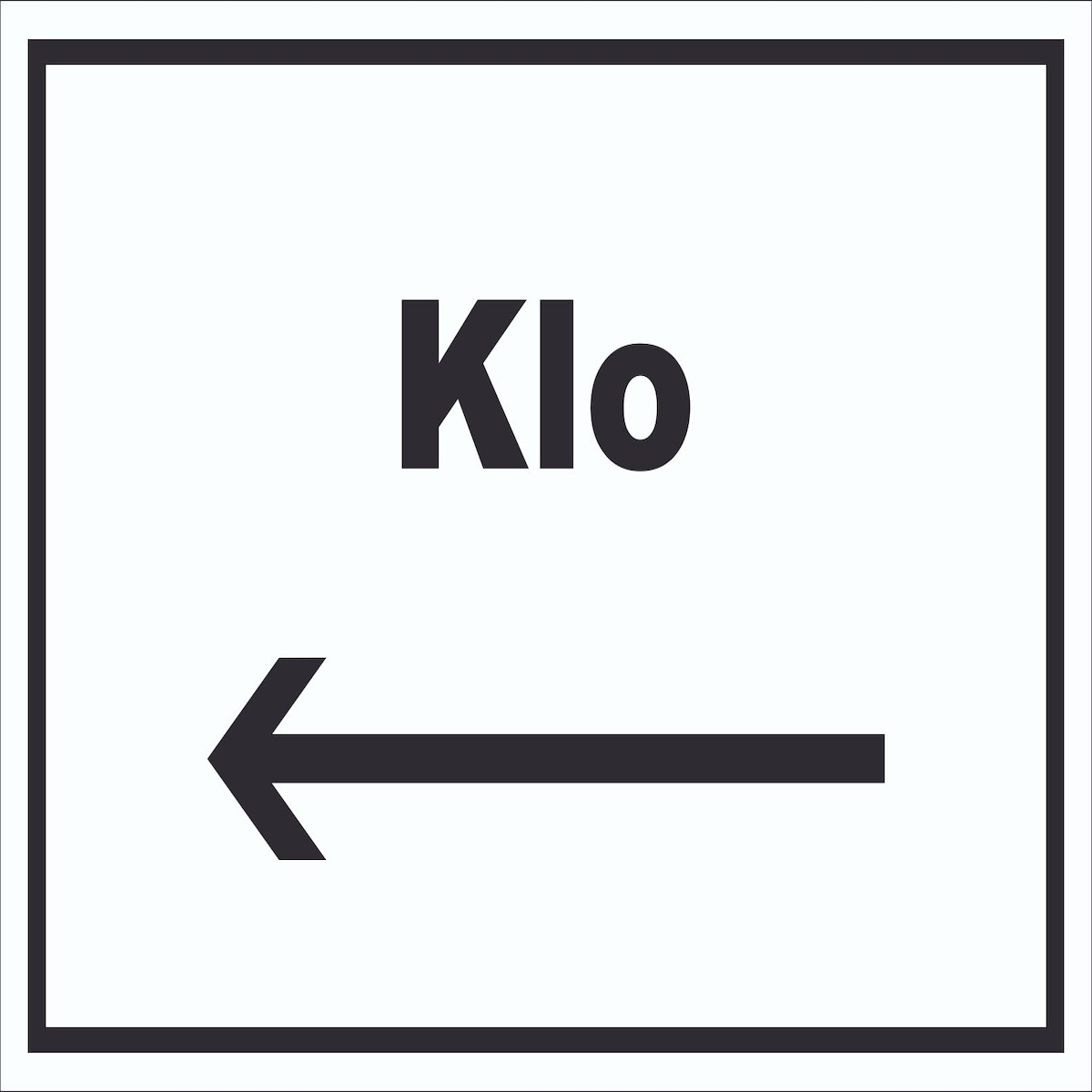 Klo Schild mit Text und Richtungspfeil rechts WC Toilette waagerecht A1 Rückseite selbstklebend