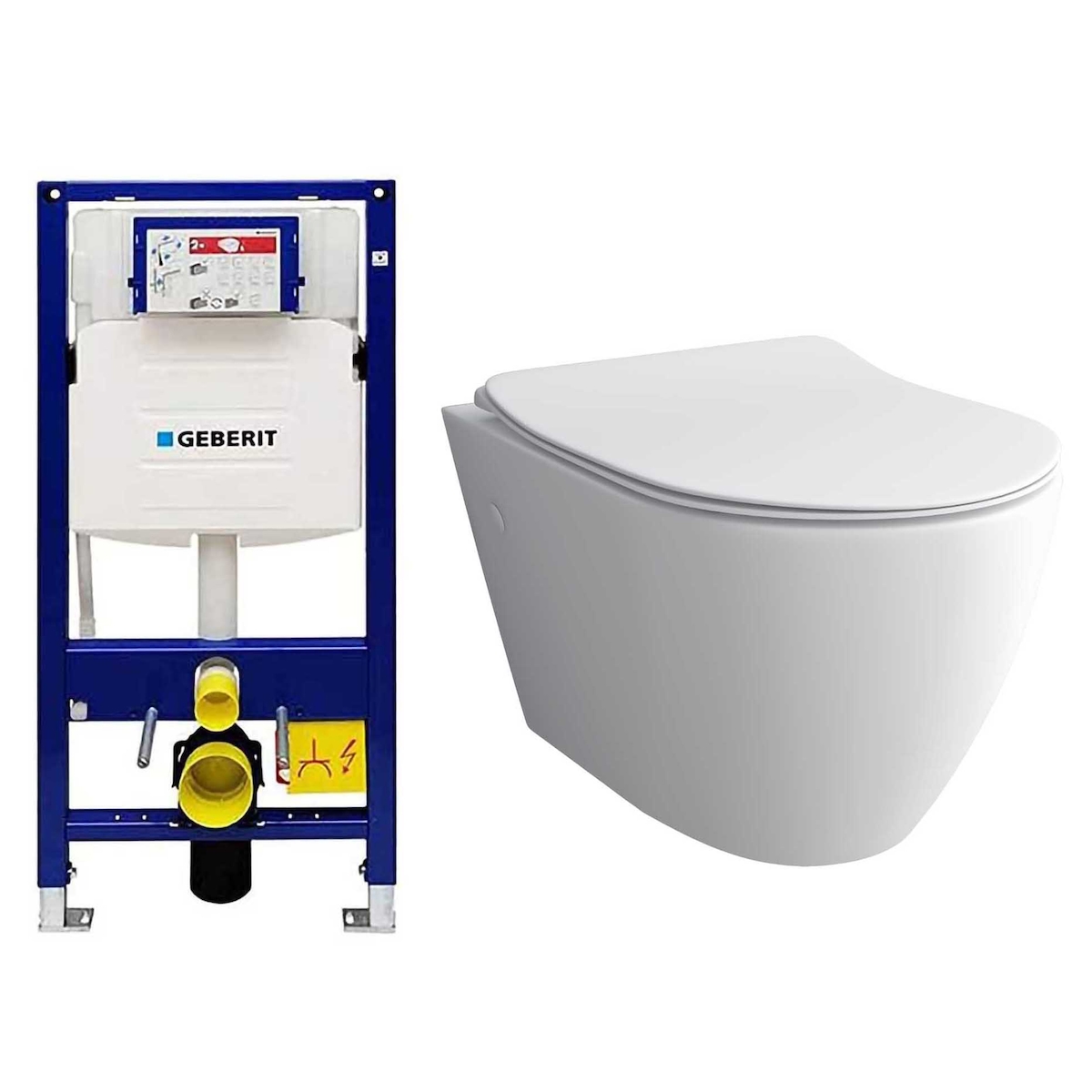 Alpenberger Wand WC Spülrandlos | Keramik Hänge WC mit Geberit Spülkasten | Toilette Vorwandelement WC Set Komplett | Nano Kloschüssel mit WC Sitz Bad