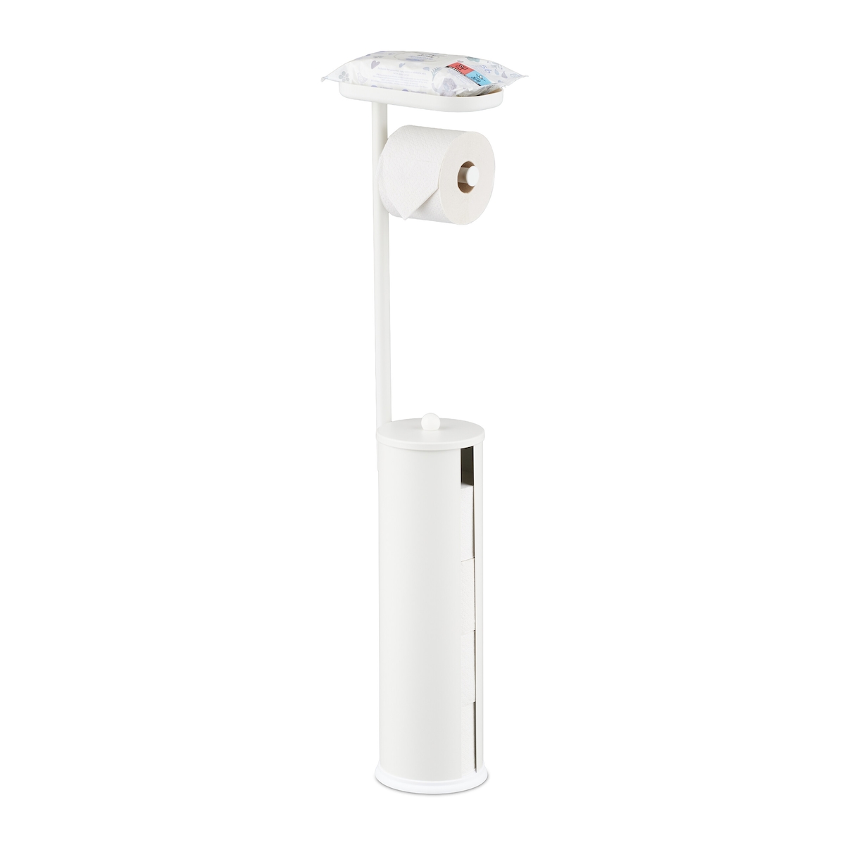 Relaxdays Toilettenpapierhalter, für 4 Ersatzrollen, Ablage, Metall, HxBxT: 91 x 22 x 14 cm, WC Rollenhalter, weiß