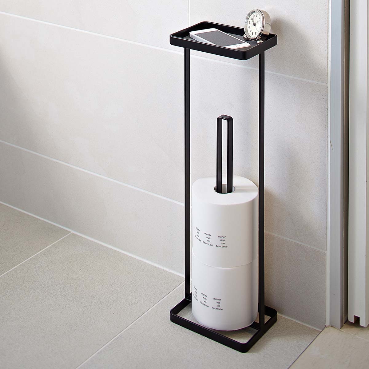 Yamazaki Toilettenpapierständer Toilettenpapierhalter mit Ablage schwarz freistehend