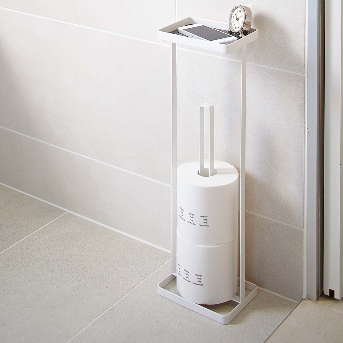 Yamazaki Home Toilettenpapierständer Toilettenpapierhalter mit Ablage weiß freistehend