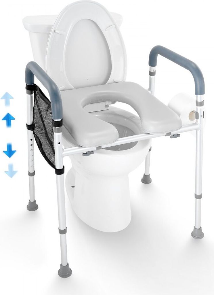 Toilettensitzerhöhung mit Armlehnen und gepolsterter Sitzfläche - Höhenverstellbar von 66-84 cm, Aluminiumrahmen
