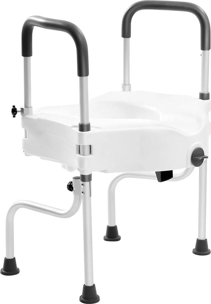 Toilettensitzerhöhung - WC-Sitz mit Armlehnen - Höhenverstellbar - Sicherheitsrahmen - Tragbar - Für Senioren - Weiß