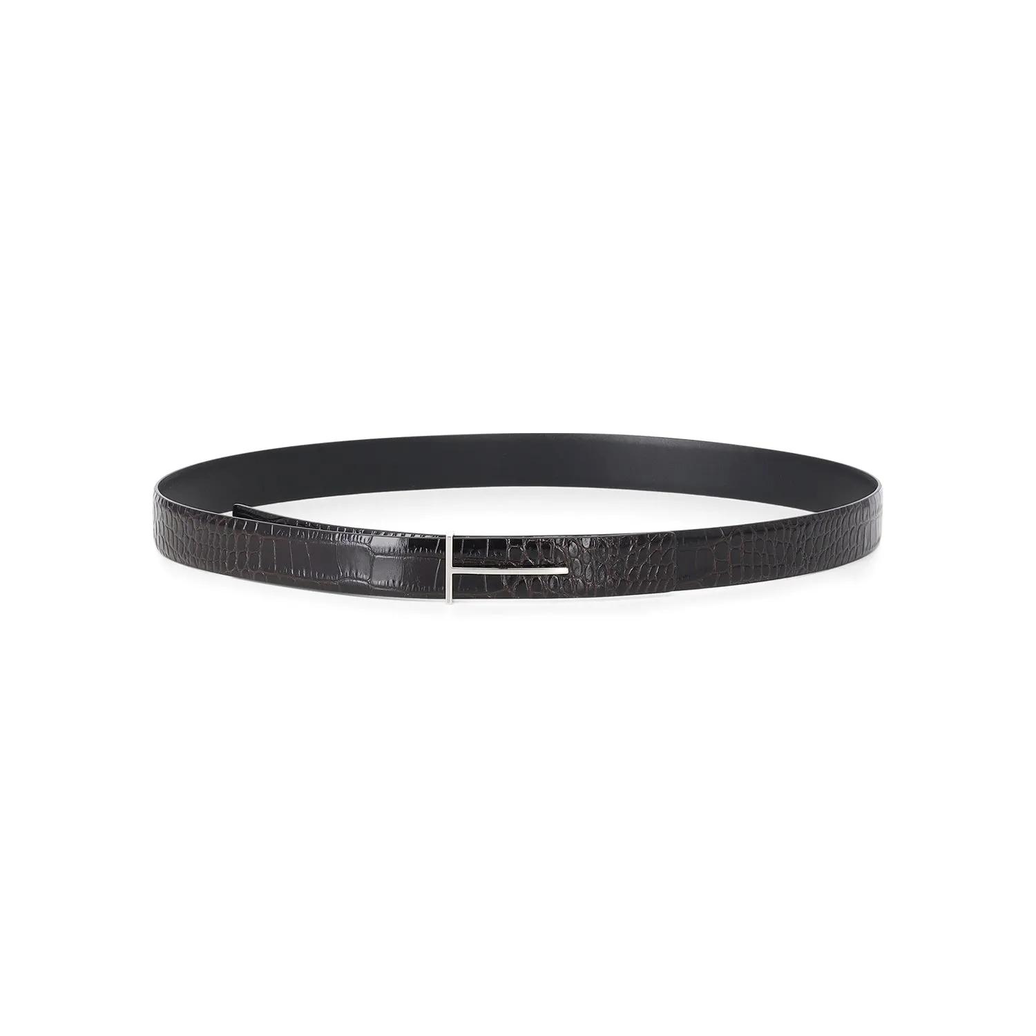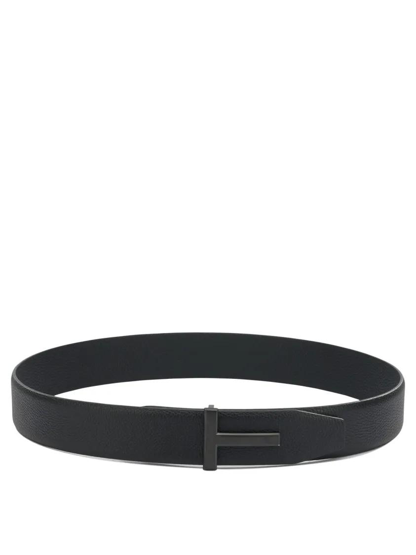 Tom Ford Gürtel - "T Icon" Leather Belt - Gr. 110 - in Schwarz - für Herren - aus Kalbsleder