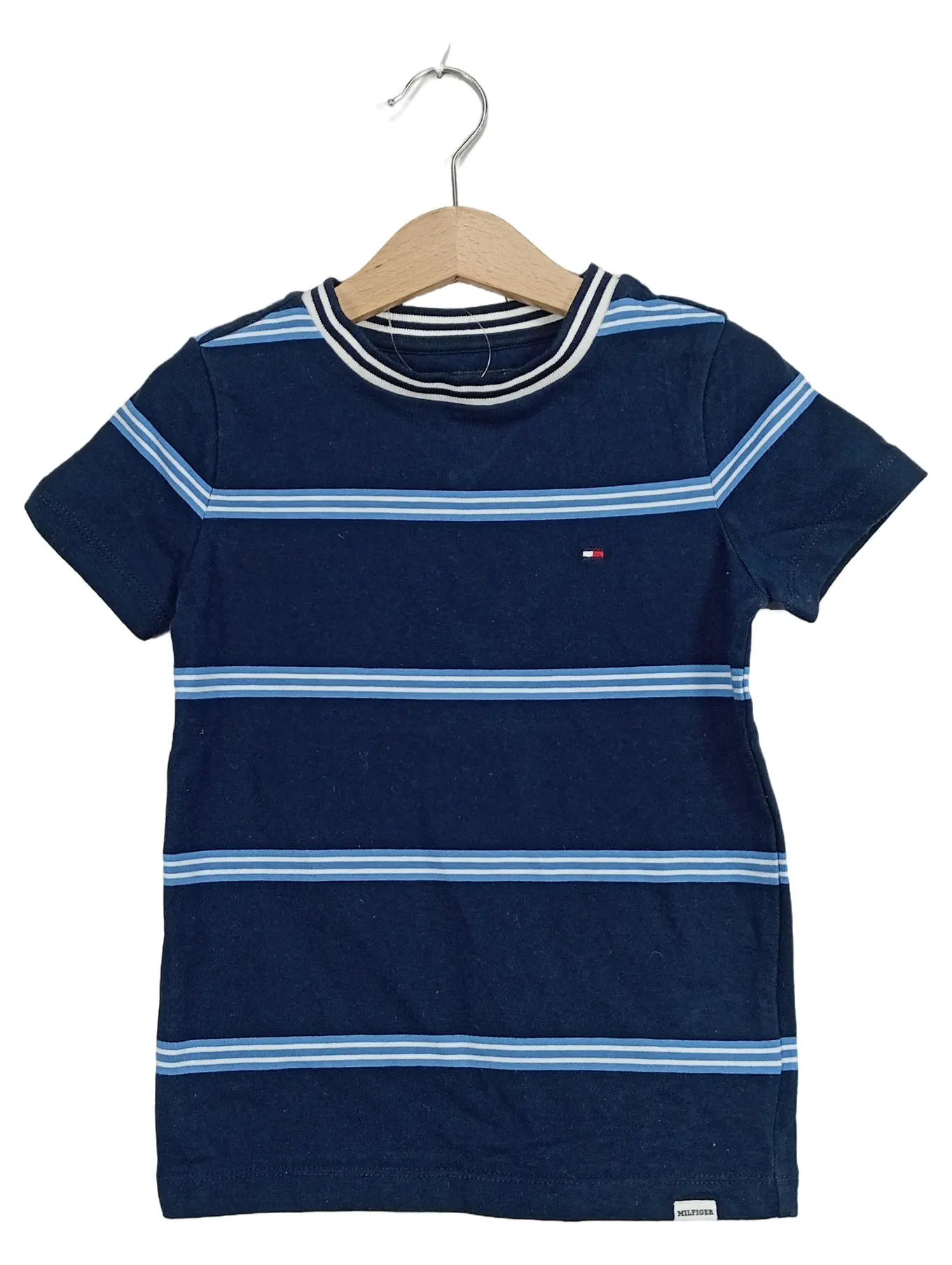 TOMMY HILFIGER Kinder T-Shirt Gr. 110 Blau Gestreift Kurzarm Logo Baumwolle